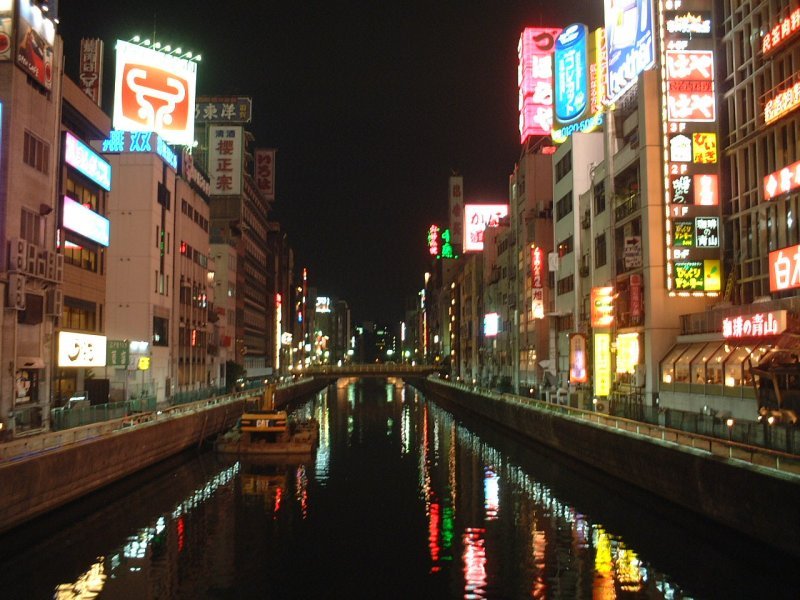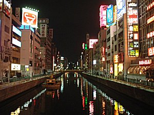 封入するガスの種類を変えれば,出てくる光の色も変わります. ・ネオン→赤橙 ・アルゴン→赤紫 ・アルゴン+水銀→青 ・アルゴン+水銀+黄緑に着色したガラス管→黄 ・アルゴン+水銀+黄に着色したガラス管→黄 ・炭酸ガス→白 色とりどりのネオン(大阪道頓堀にて 2001/09/17 福江 純 撮影) |
