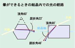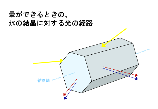 光がこの結晶に射し込むとき,結晶の表面では屈折が起こり,