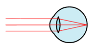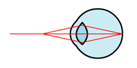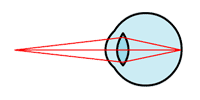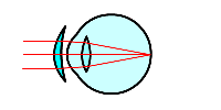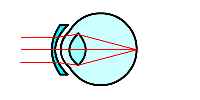 近くのものは見えるのに,遠くのものがぼやけてよく見えない, という症状は,近視と呼ばれます. このような人の目では,遠くのものの像が, 網膜に至るまでに焦点を結んでしまいます. これは,水晶体が遠くを見たときも厚くなっているためで, 凹レンズの眼鏡によって矯正することができます. | |