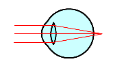 遠くのものは問題なく見えるのに, 近くのものが鮮明に見えない症状は,遠視と呼ばれます. このような人の目では,近くのものの像が, 網膜より奧で焦点を結んでしまいます. これは,水晶体が近くを見たときも薄くなっているためで ,凸レンズの眼鏡によって焦点距離を近くする矯正をします. | |