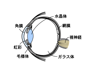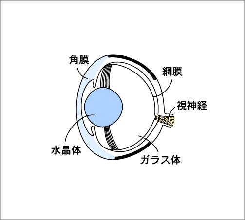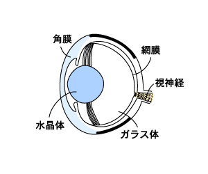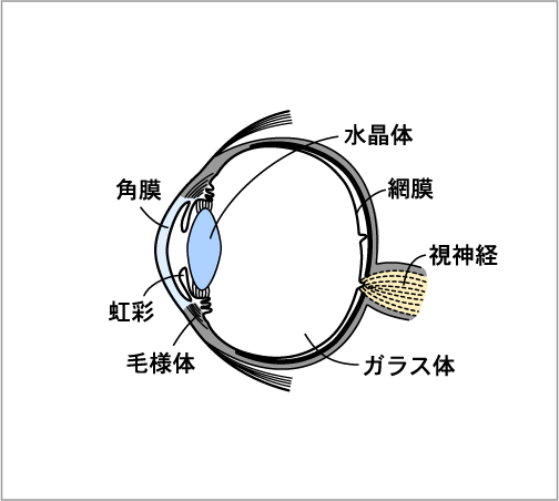 人間の目に入ってきた光は,角膜の後ろの水晶体(レンズ)で曲げられ,