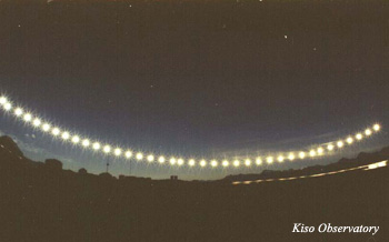 画像は太陽に露出を合わせているため暗く見えますが, 実際はもっと明るく,日本の夕方ぐらいの明るさです. 資料提供:東京大学 木曽観測所 |