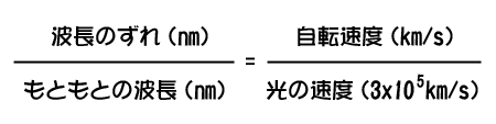 ここで求められた速度は,太陽の両縁での速度の差なので, 実際の自転速度は上で求めた値の半分になります.   →   (    )km/s