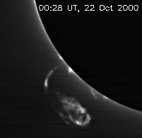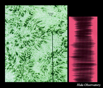 左:2000年10月22日,京都大学附属飛騨天文台フレアモニタ望遠鏡にて撮影. 資料提供:京都大学附属 飛騨天文台 |