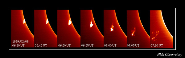 太陽の縁近くの活動領域でのフレアの様子(1995年3月9日) MPEGムービー