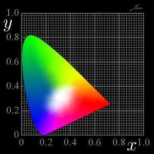 色を表す(表色)ためには, “いろいろな”理由から一般に3つの数値が必要ですが, 明るさの情報を犠牲にして2つの数値で色を表し, 2次元の図に表現したものを, 色度図といいます. |