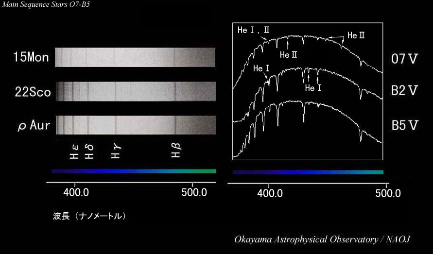主系列星O7型からB5型の可視光スペクトルです.