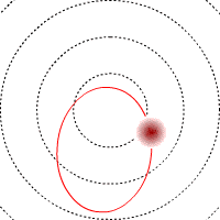 軌道が円に近いペガスス座51星の視線速度の時間変化は, きれいな正弦波になるのに対して, 軌道が楕円の場合は歪んだ形になることから, 軌道の形がわかります. その後観測が進むにつれ, 現在では,惑星の軌道は円に近い方がむしろ特殊で, 一般的には公転軌道がさまざまな楕円であることがわかってきています. 軌道が楕円になったのは, これらの系では巨大惑星の軌道の交差(衝突)が起って軌道が歪んだから, という説が有力です. |